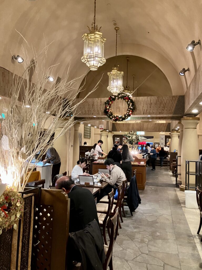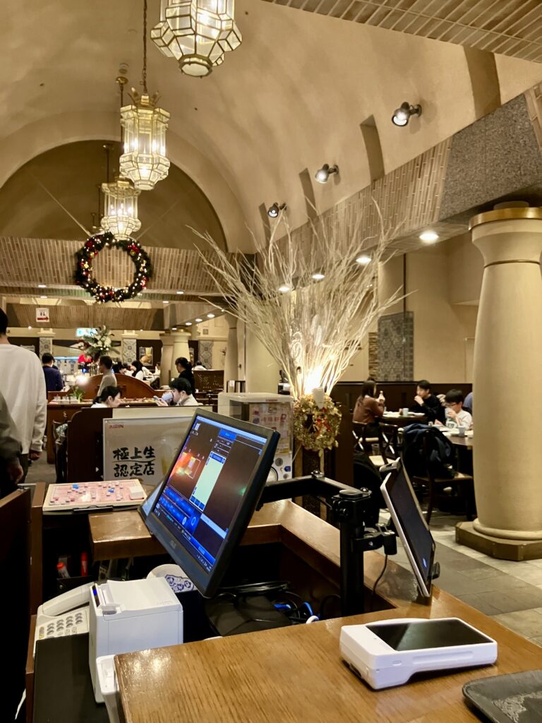 コレだけ広いお店のホールオペレーションは大変です。デシャップから玄関の顧客が点に見える程の距離と広さなのでスタッフが飛ぶように行き交います。